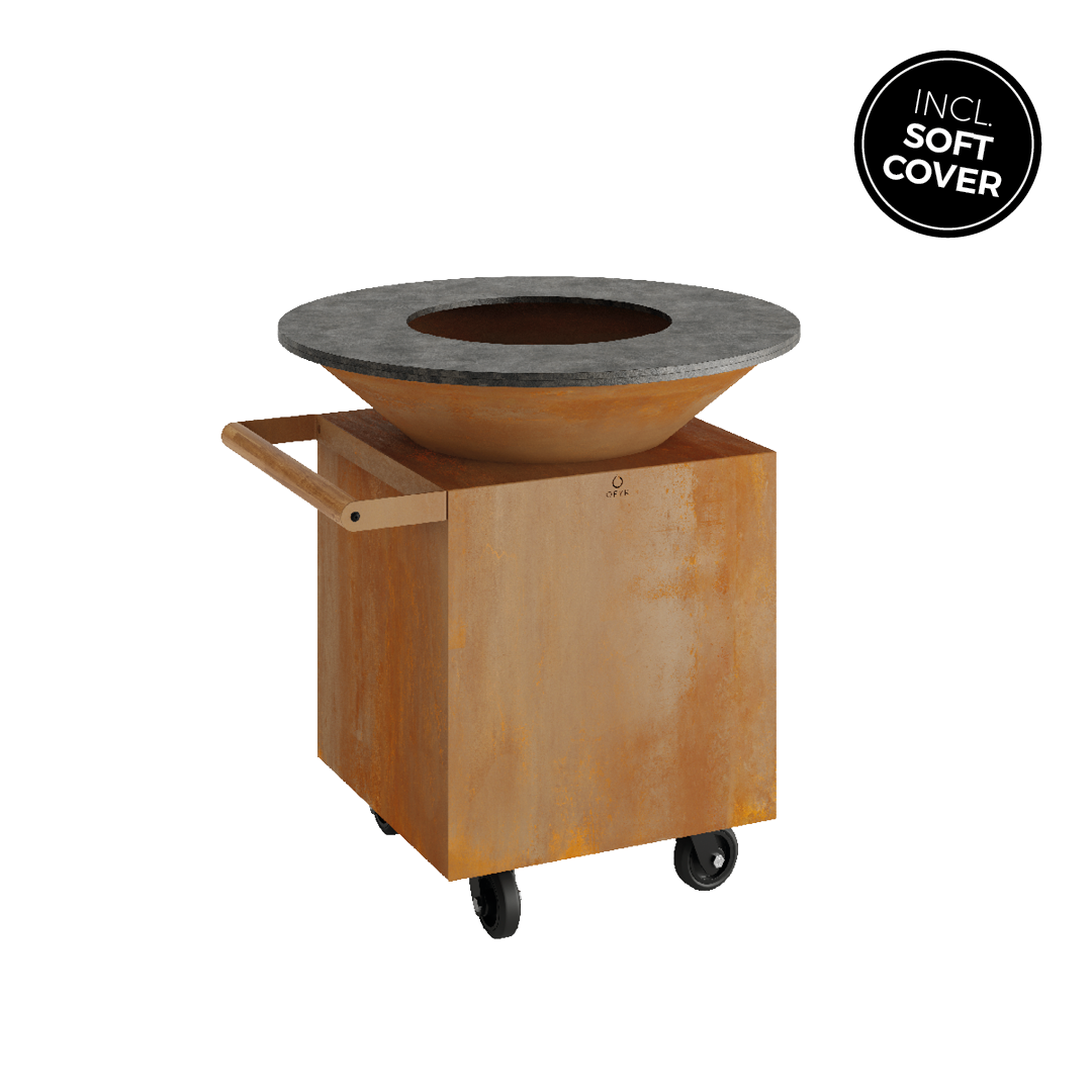 Der OFYR Classic 100 PRO verfügt über alle Eigenschaften des OFYR Classic und bietet als zusätzlichen Vorteil einen Griff und Räder. Sie können Ihre Kocheinheit ganz bequem versetzen. Der Griff besteht aus Teakholz. Deshalb empfiehlt es sich, den OFYR Classic 100 PRO im Haus oder unter einem Dach aufzubewahren.