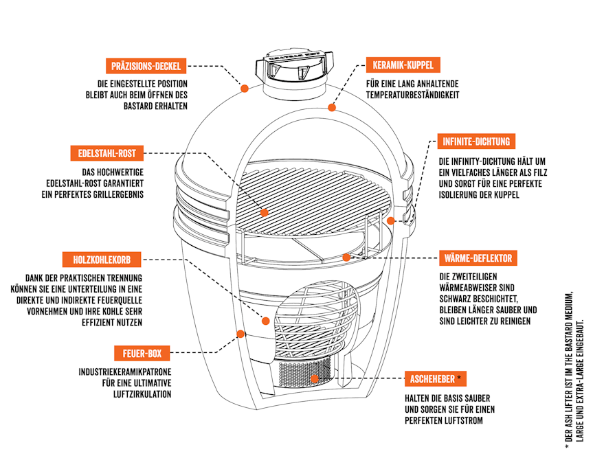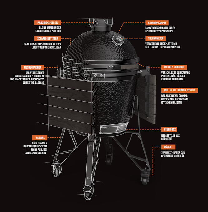 Grillen auf die beste Art und Weise! Der Bastard Urban ist ideal für den wahren Grill-Enthusiasten und bietet genug Platz für kulinarische Gerichte für die Familie und Freunde. Dank handgefertigter Keramikoberfläche ist jedes Modell einzigartig. Mit beeindruckenden Abweichungen in Farbe und Textur ist dieses Modell eine wahre Schönheit für deinen Garten.