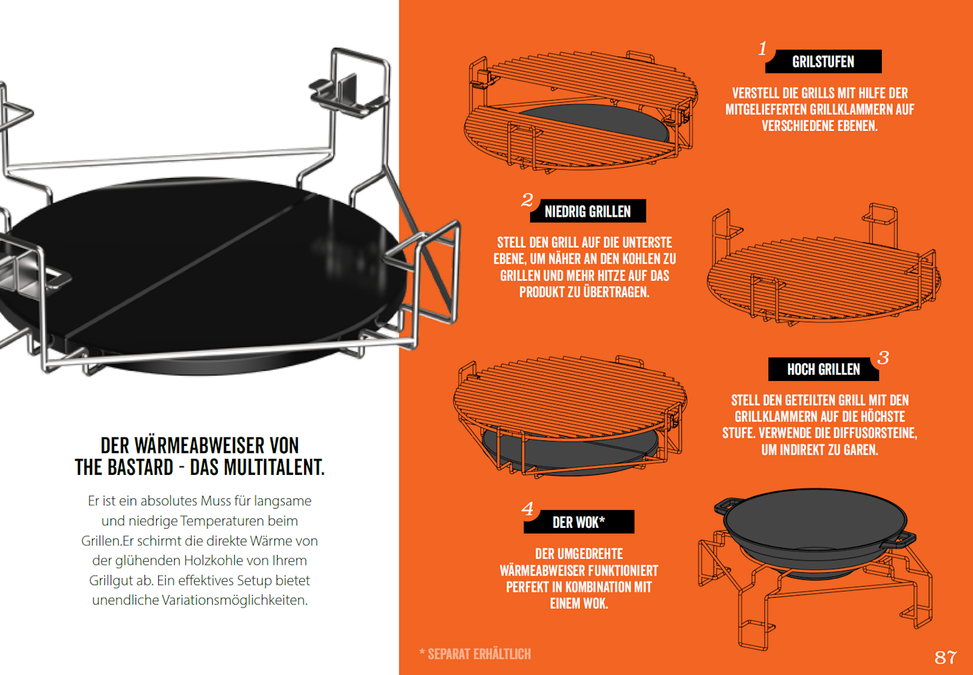 Machen Sie das Beste aus Ihrem Grill: mit unserem Multilevel Cooking System - einem modularen System, das Ihren Bastard in ein Multitalent verwandelt. So können Sie in einem Arbeitsgang für jede komplette Mahlzeit die ideale Gitteranordnung erstellen.
